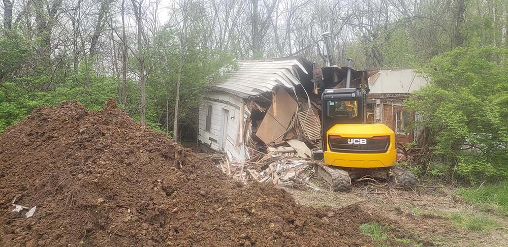 The customer above asked ICC to tear down and remove this old house while we were relocating his gravel road.